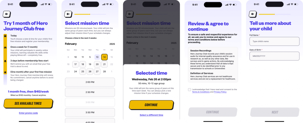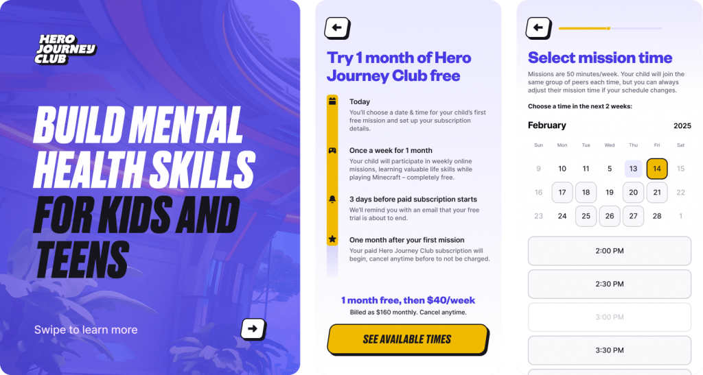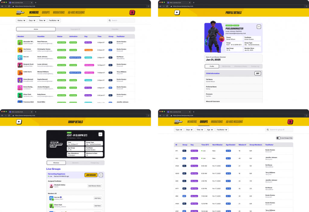 When I joined Hero Journey Club, they had established a successful, innovative adult mental wellness program that combined group online gaming with professional therapeutic guidance. I was brought on to help the company launch the youth-focused version of that program.