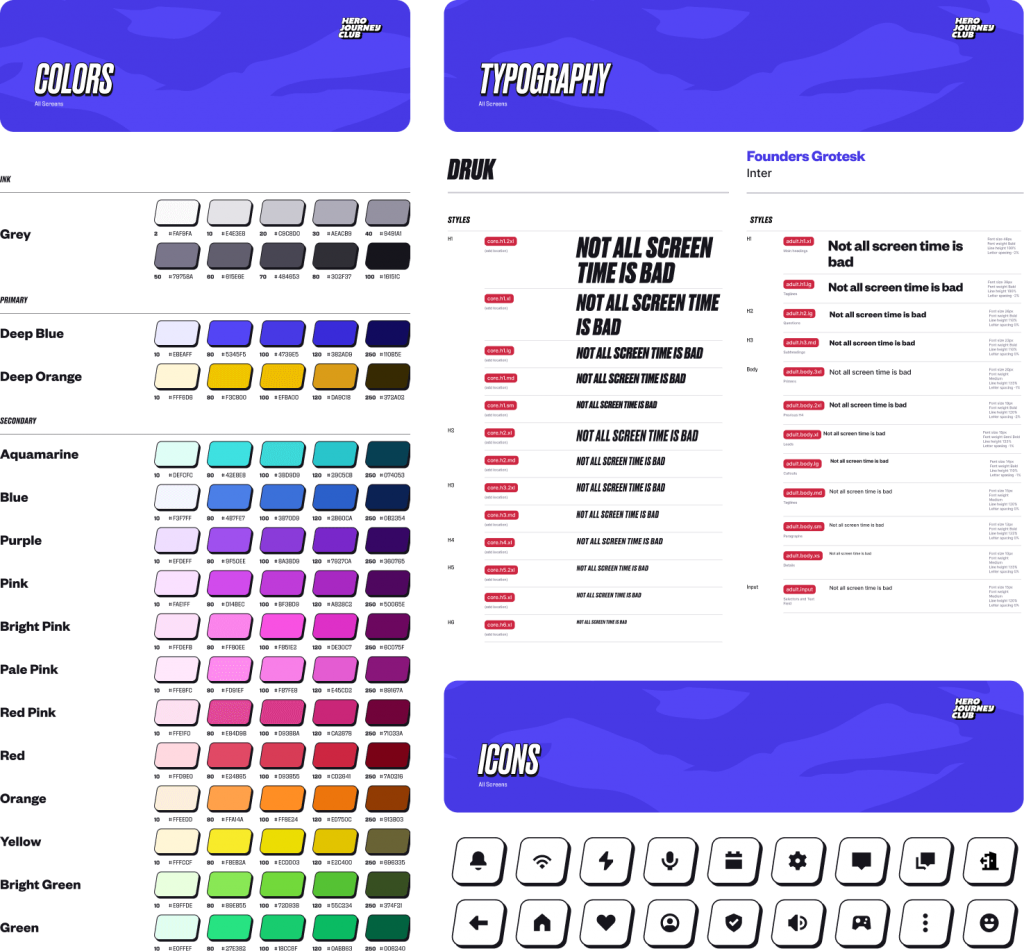 As I joined, Hero Journey Club had been working with the highly-reputable design agency Metalab to assist in the creation of that new vision. Through an intensive exploration process, the designers at Metalab delivered a compelling vision for the future of the brand: a vibrant, game-inspired visual language that could stand comfortably alongside relevant gaming experiences such as Fortnite, Valorant, and GTA5.Â
