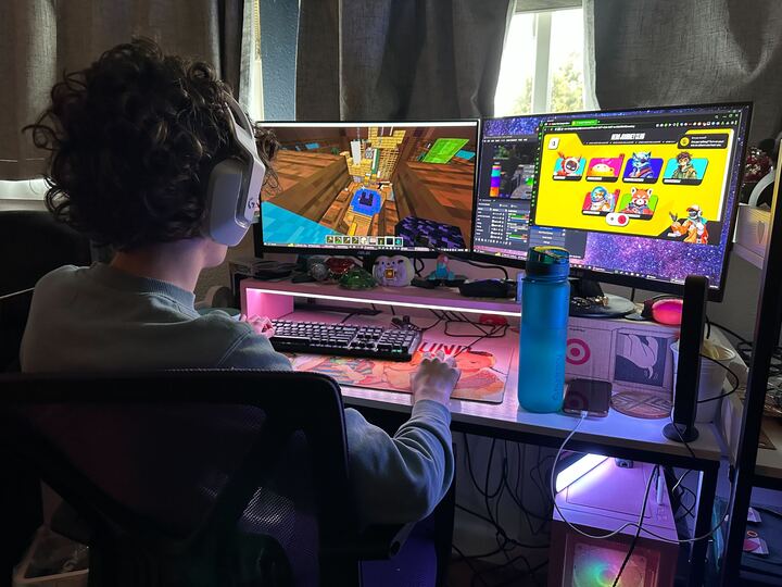 A teen playing Minecraft in a private audio chat with his Hero Journey Club group
