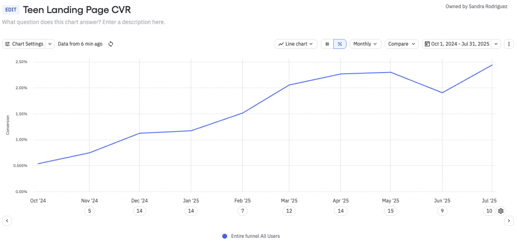 The redesign, launch, and refinement of the youth program lead to over 3x improvement in conversion rate, gaining 4,000+ active users in less than 10 months.